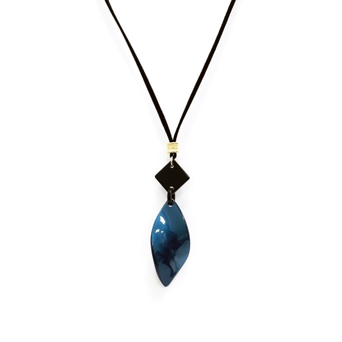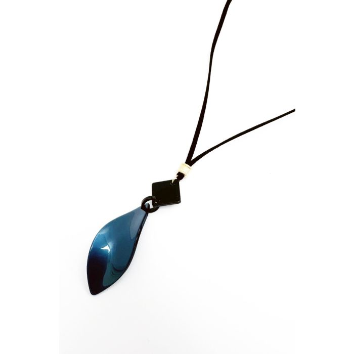 Curved Leaf Necklace in Blue