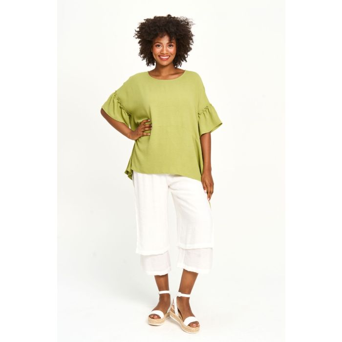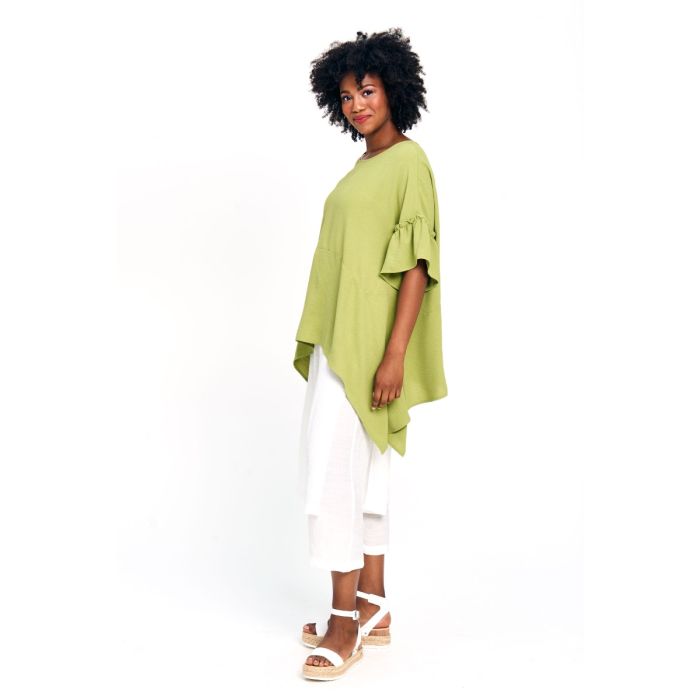 Dropped Ruffle Sleeve Tunic in Lime