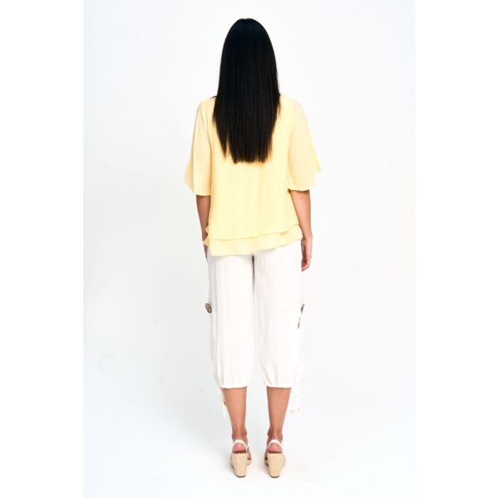 This chic and versatile blouse is perfect for a warm day at the office or brunch with friends. We love the two-layer look as well!
