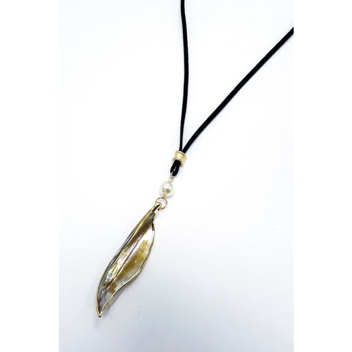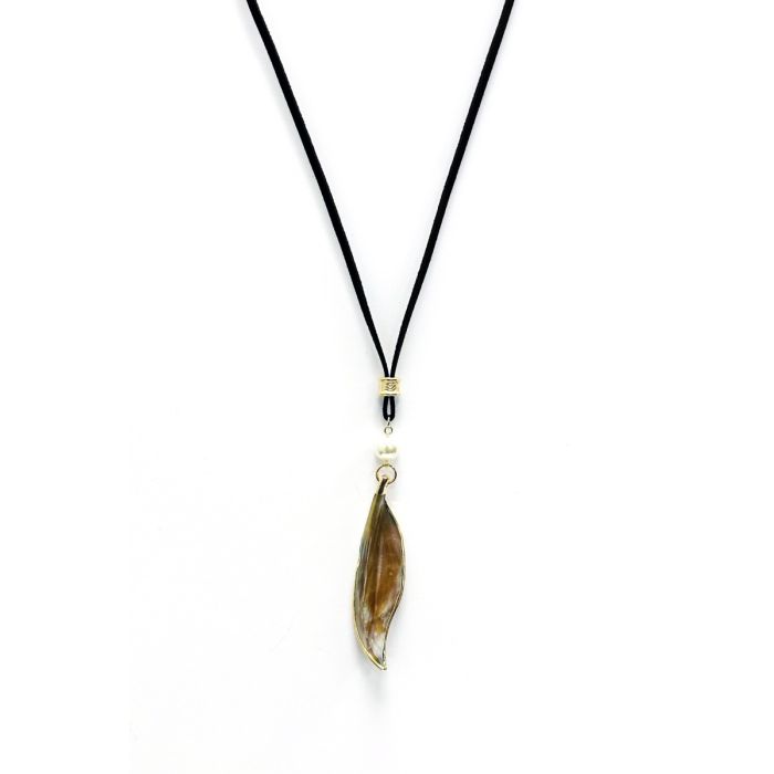 Crafted with meticulous attention to detail, this necklace features a delicate leaf-shaped pendant in brown with an addition of iridescent details. It's convertible, so you can wear it long or short. Adjustable closure.