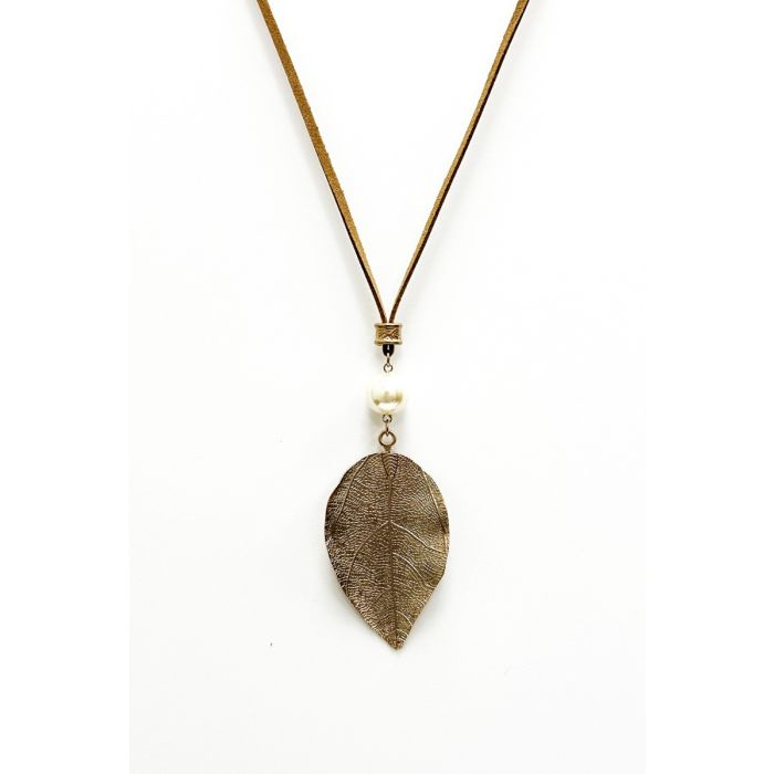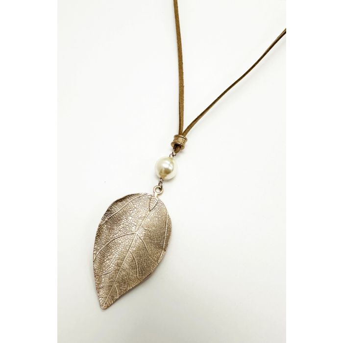 This exquisite necklace features a delicate leaf pendant plated in rose gold, exuding a timeless charm and sophistication. It's convertible, so you can wear it long or short. Adjustable closure.