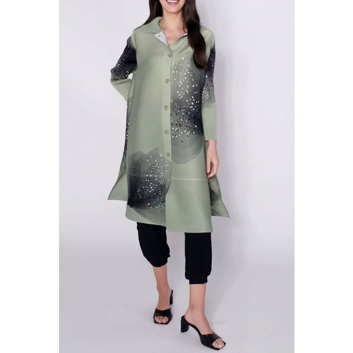 A bold print and delicate plisse fabric make this tunic top ideal for a breezy and refined look. Wear it with a pair of bottoms from our collection.