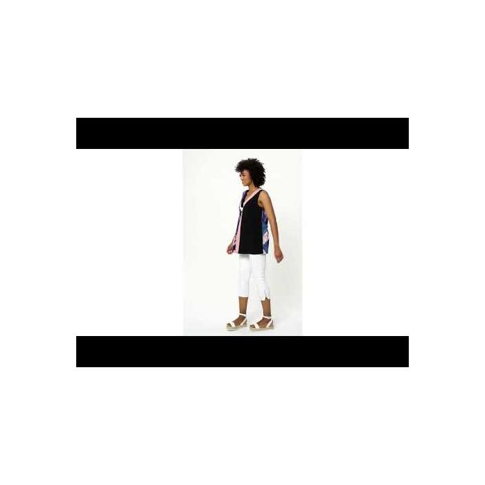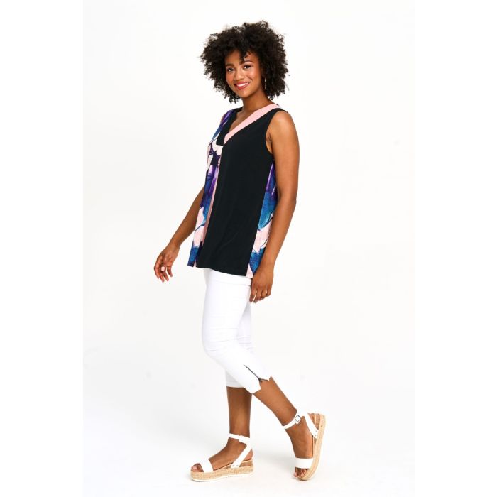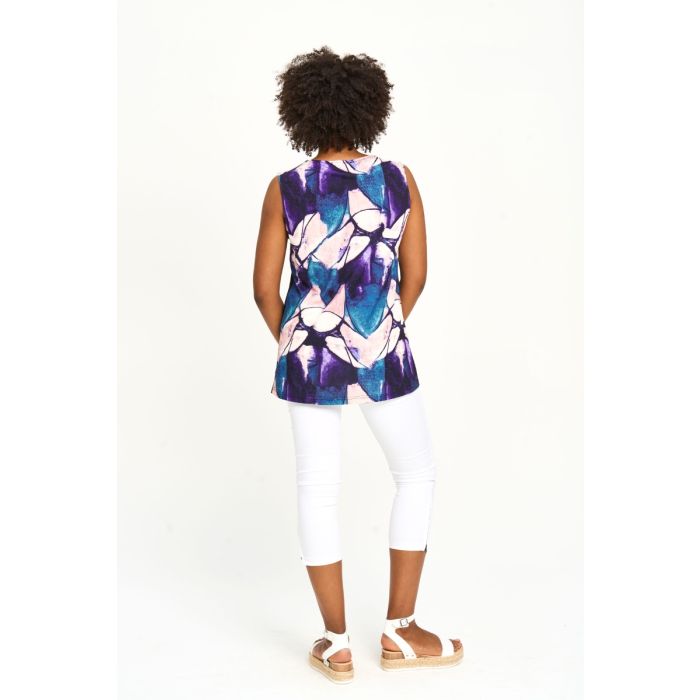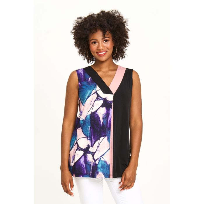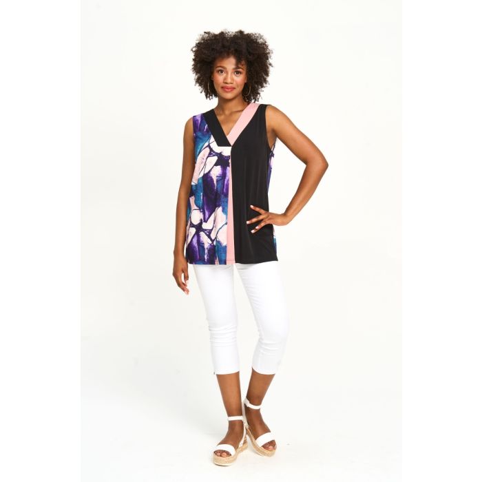 Solid & Patterned Sleeveless V-Neck Top in Purple